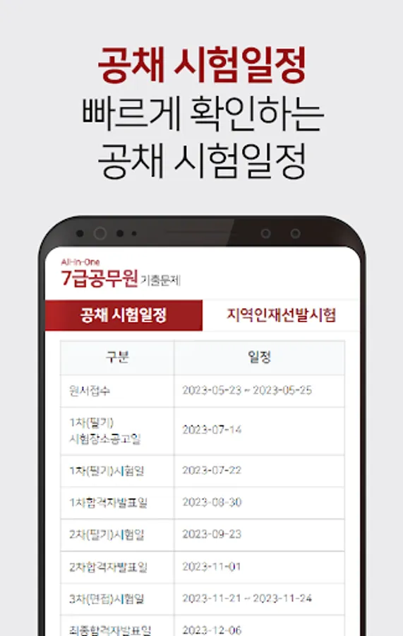 You can check at a glance from the date of application for the 7th grade civil servant recruitment & local talent selection test, the date of announcement of the test site, the date of the interview, and the date of the announcement of the final successful applicants.