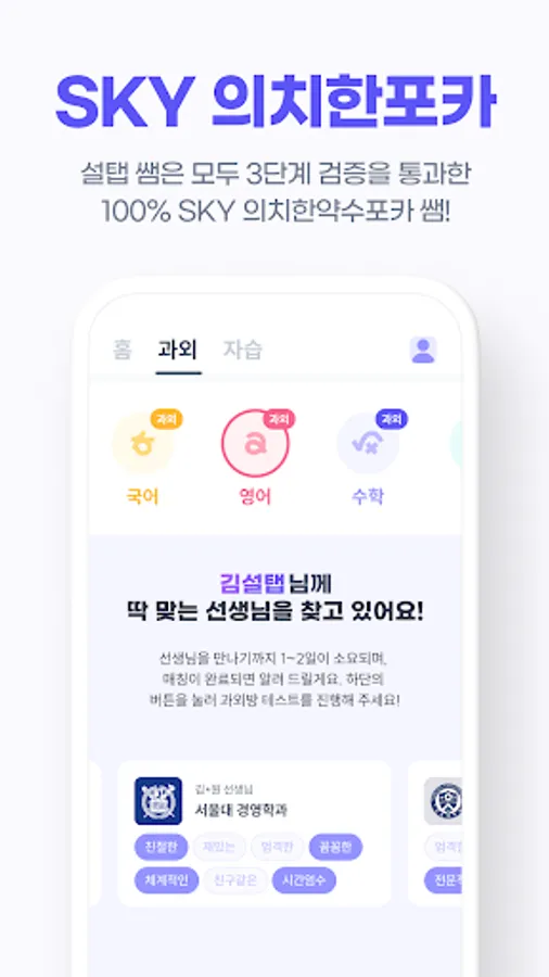 - 1:1 non-face-to-face tutoring with SKY teachers