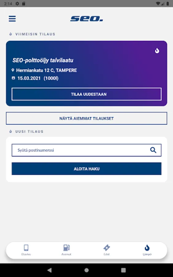With the application, ordering fuel oil is easy and fast. Own, cheaper price for application users. In the future, you can find the order history on your own mobile phone, which makes it easy to place a new order.