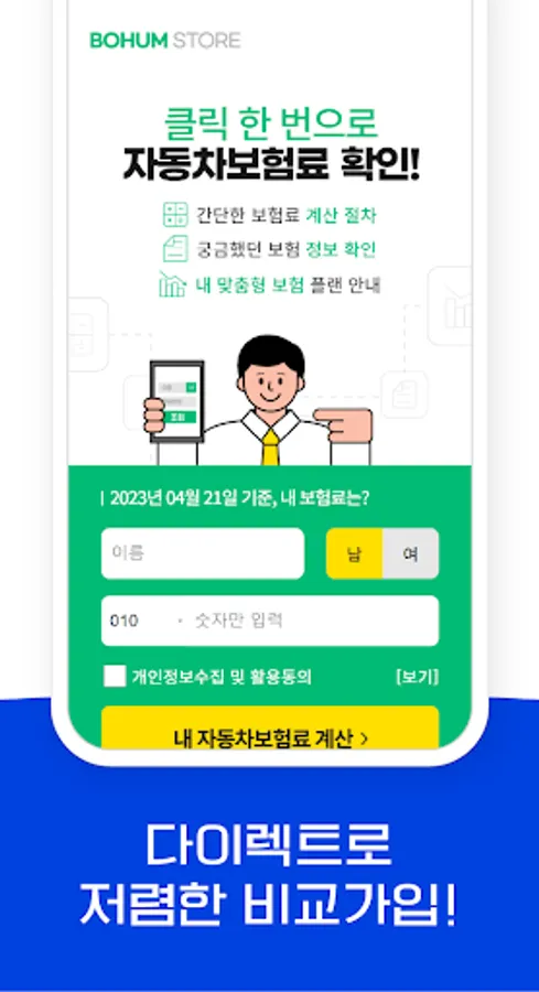 You can use the app by simply entering information without cumbersome authentication procedures such as public certificates. Real-time insurance premium calculation with one click, receive a comparative quote by insurance company, and receive information on various special contract benefits.