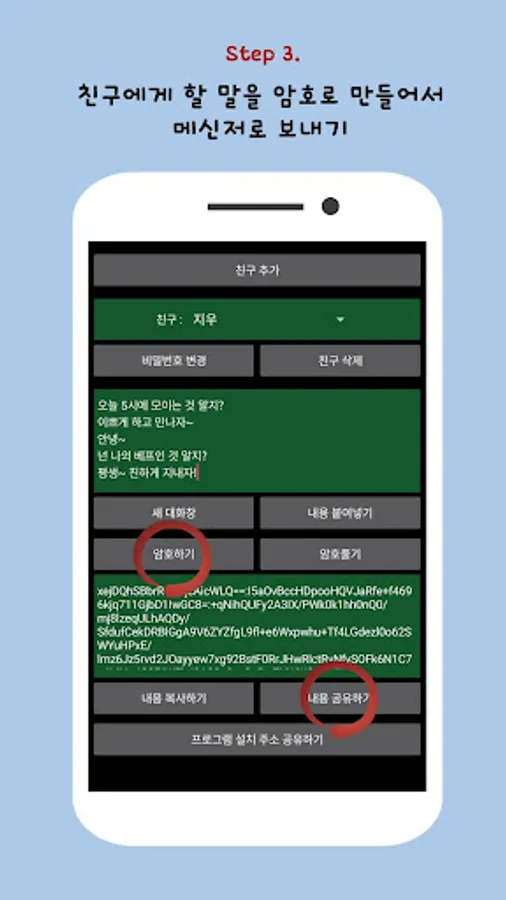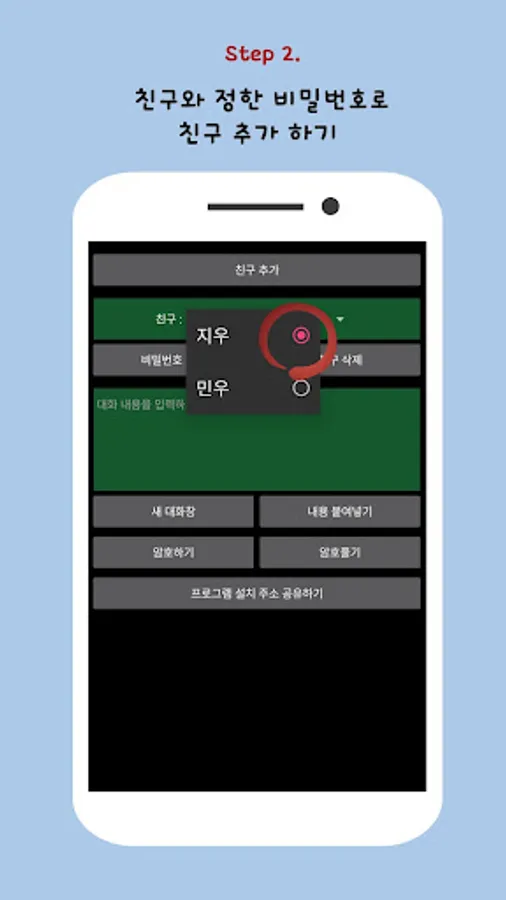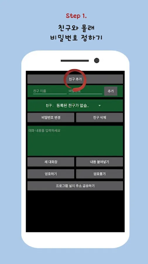 2. Register as a friend in a secret chat app with a friend