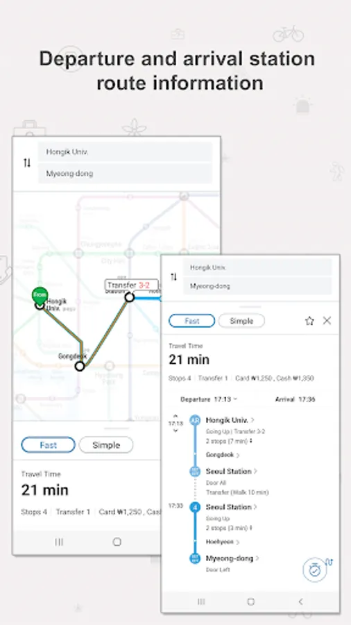 Seoul Subway App is developed by Seoul Metro which operates Line No.1~8 of subways in Seoul to enhance convenience of foreign subway users in Seoul. This app enables foreign travelers to use a subway without inconvenience from boarding, transit to arrival of a train by receiving location-based information.