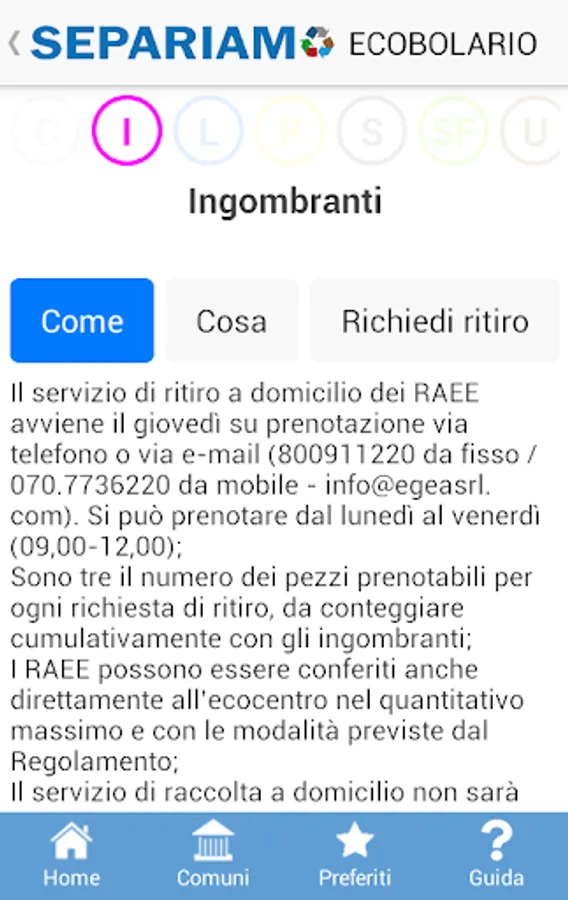 Geolocated and download the updated calendar of the collection and discover, through the Ecobolario, the method of disposal of each type of waste and where to deliver it.