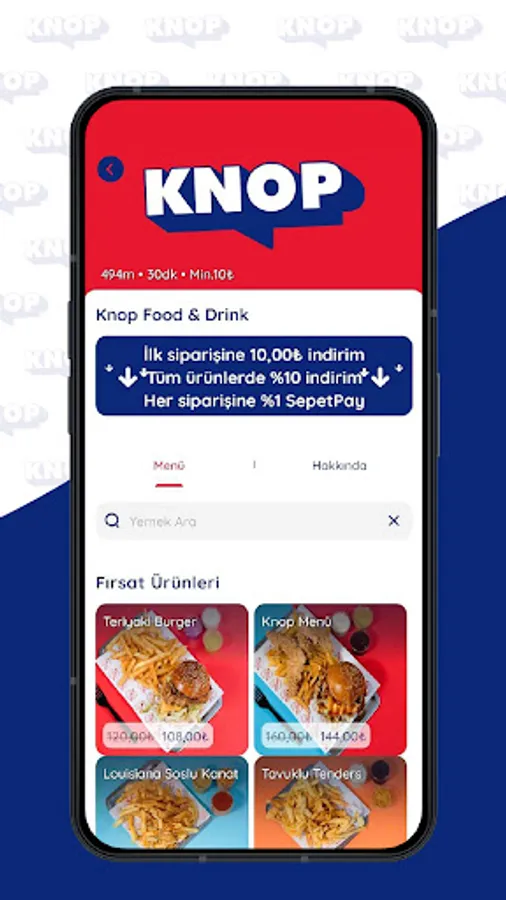 Knop Food & Drink ile lezzet dünyası kapınızda! Sadece bir dokunuşla yüzlerce yemek ve içeceğe ulaşın. Zengin menümüzden damak tadınıza uygun lezzetleri seçin ve hızlıca sipariş verin. Taze ve kaliteli malzemelerle hazırlanan yemeklerimiz ve içeceklerimizle keyifli bir deneyim yaşayın. Kolay kullanımıyla Knop Food &Drink uygulamasını hemen indirin ve lezzetin tadını doyasıya yaşayın!