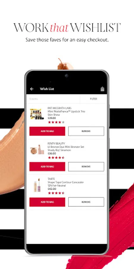 Discover the best in beauty—makeup, skincare, cosmetics and more—anytime, anywhere. Quickly and easily shop the newest products from top brands like Fenty Beauty, Rare Beauty, Tarte, Anastasia Beverly Hills, Benefit Cosmetics, Fresh, Pixi, Ouai and Olaplex. Discover our in-house brand, Sephora Collection. Get inspired by the hottest trends, right at your fingertips in BeautyFeed. Track and redeem your Beauty Pass points.