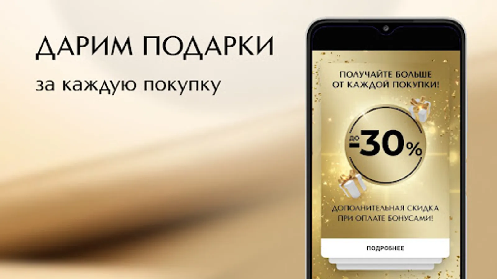 Get 1000 bonuses for installing and registering in the application. Exchange them for perfume, make-up and beauty products. 1 bonus = 1 ruble. The offer is valid for new users.