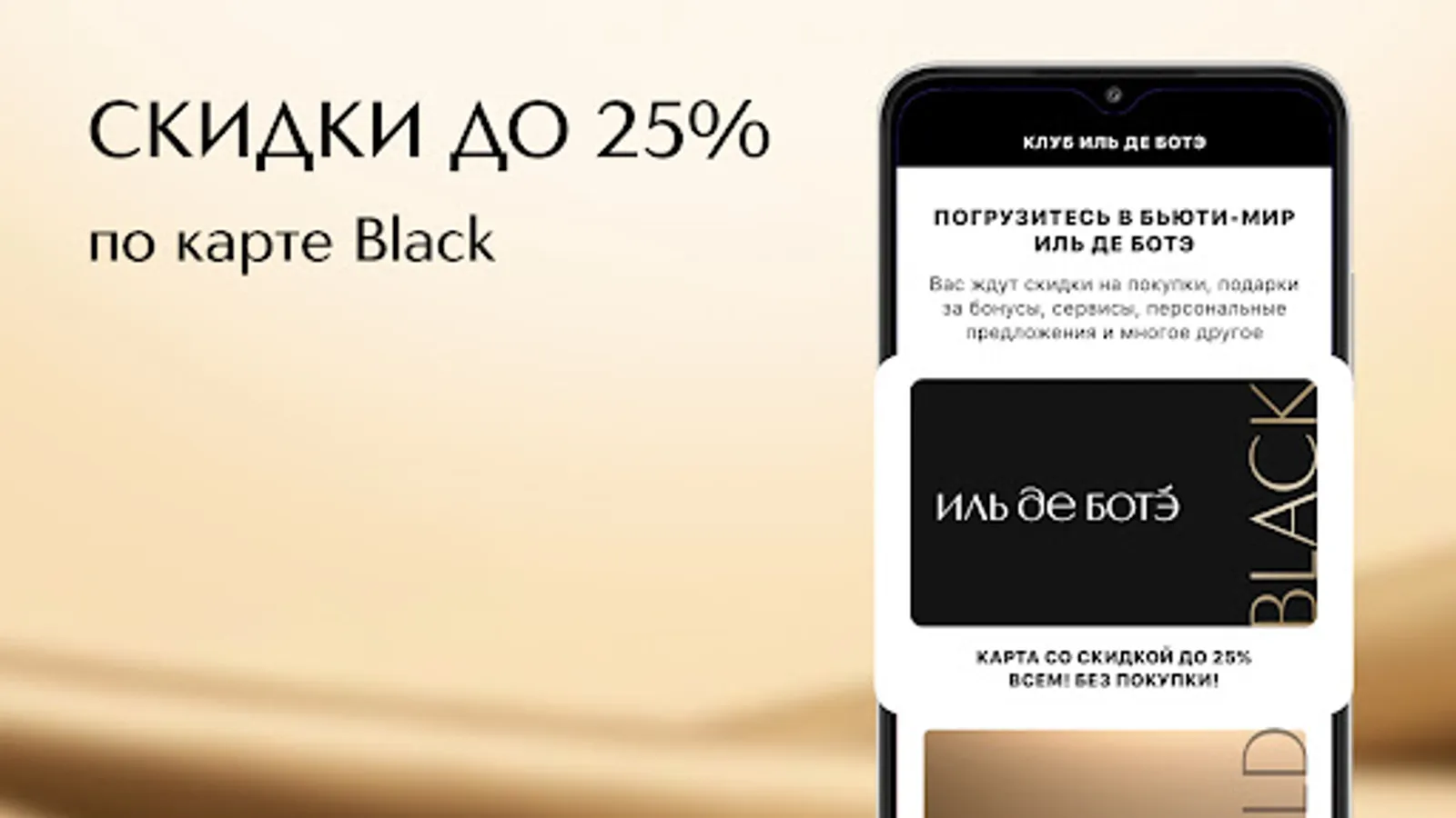 Issue a card in the app and get up to 25% discount on perfumes and make-up products. The card will take effect immediately and will always be at hand - a plastic card is not needed. Accumulate bonuses and get even more discounts!