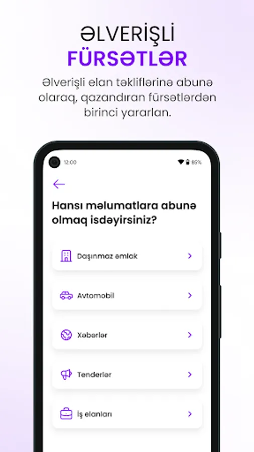Daşınmaz əmlak, nəqliyyat, tender, iş elanları və xəbərlərə seçdiyiniz meyarlar üzrə