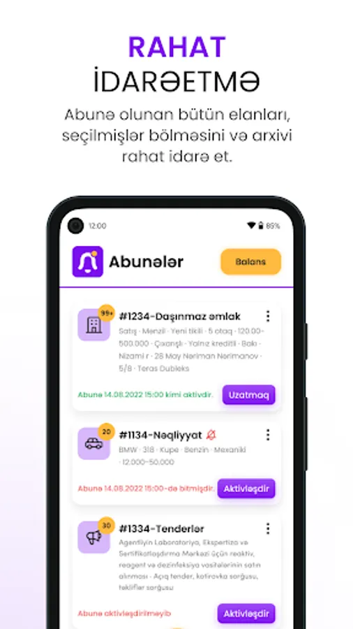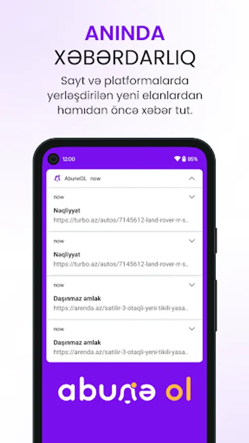 Seçilmiş meyarlar üzrə elanları ABUNƏ.OL tətbiqi əksər elan saytları və platformaları