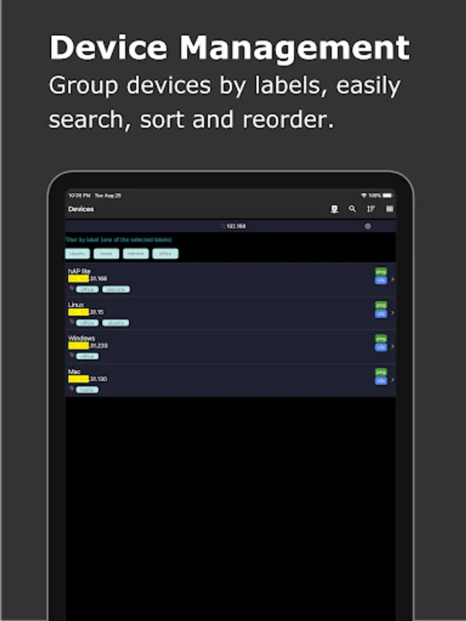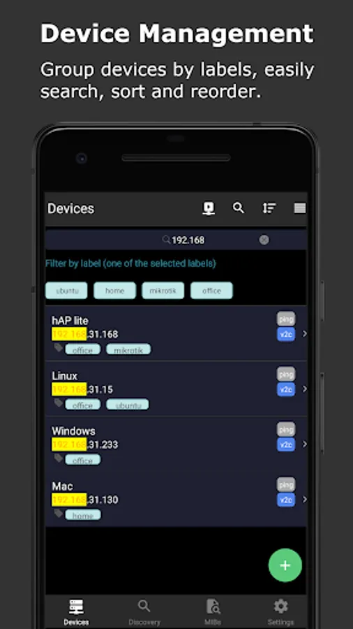 • Multiple SNMP device management. Support SNMPv2c. Group devices by labels. Search routers by name, host, or labels. Monitor device ping with ms and TTL. Discover neighbor network devices.