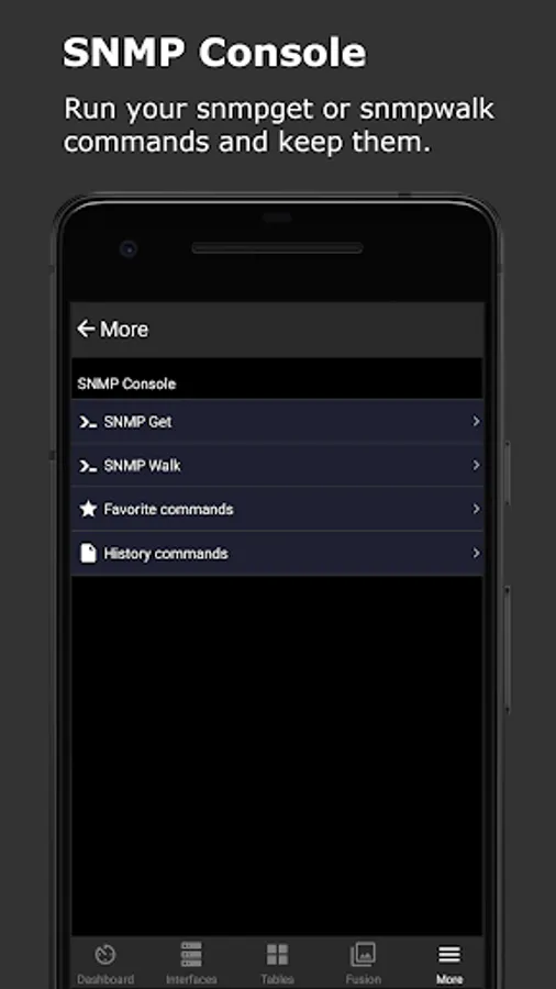 • SNMP Console. Manual snmpget submit form. Manual snmpwalk submit form. Save your favorite commands and run it latter. Find history commands if needed.