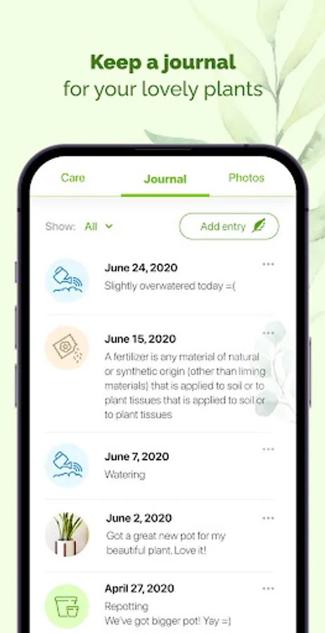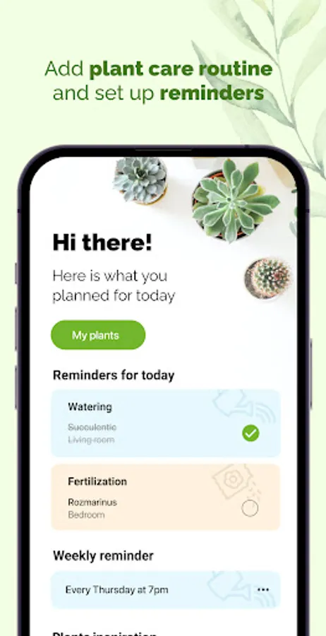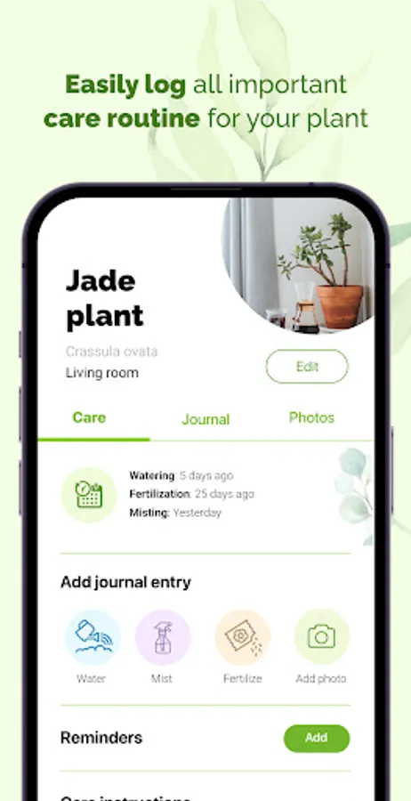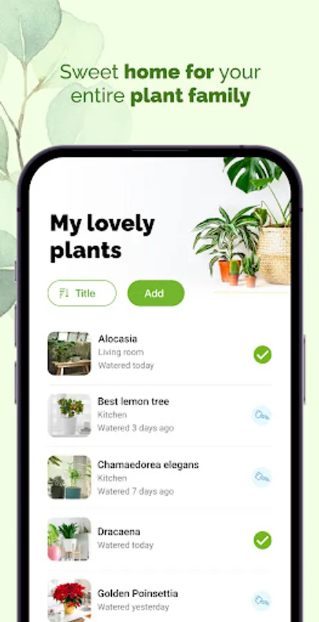 – Create profiles for your plants, add a name, room, reminders, and photos