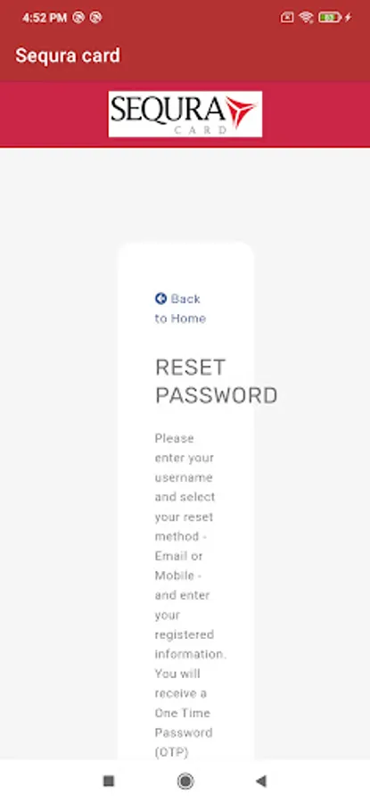 The SEQURA CARD es el único banco de servicio completo en su bolsillo diseñado para satisfacer las necesidades financieras específicas de los clientes que envían dinero con frecuencia a su familia en casa. No más líneas, no más cargos injustos, no más adivinanzas sobre cuándo y cuánto recibirán. Su TARJETA SEQURA está diseñada para depósito directo con disponibilidad inmediata de efectivo en cualquier cajero automático y transferencias automáticas de dinero a tarjetas de acompañantes familiares en todo el mundo. Lo mejor de todo es que los gastos de transferencia están limitados a solo $8 por remesa hasta $1,500 y puede monitorear cómo sus seres queridos usan los fondos que tanto le costó enviarles. Además, la TARJETA SEQURA le brinda acceso a docenas de otros beneficios, incluido el uso de la tarjeta en todos los lugares donde se aceptan tarjetas de crédito Visa. Esta aplicación fácil de usar no solo es la forma más rápida, sino también la más inteligente de controlar cómo gasta, ahorra y realiza operaciones bancarias las 24 horas del día, los 7 días de la semana, directamente desde su teléfono móvil.