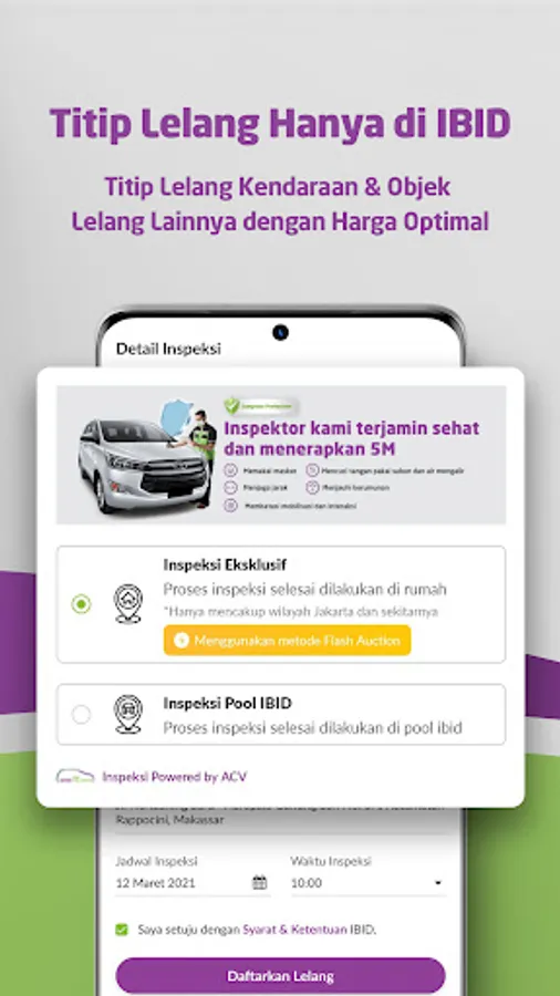 All auction activities at IBID can all be done through this application, starting from checking the auction schedule, checking the lot list, registration, buying auction participant numbers (NPL), conducting the auction process, to monitoring the administrative process of the car you have won.