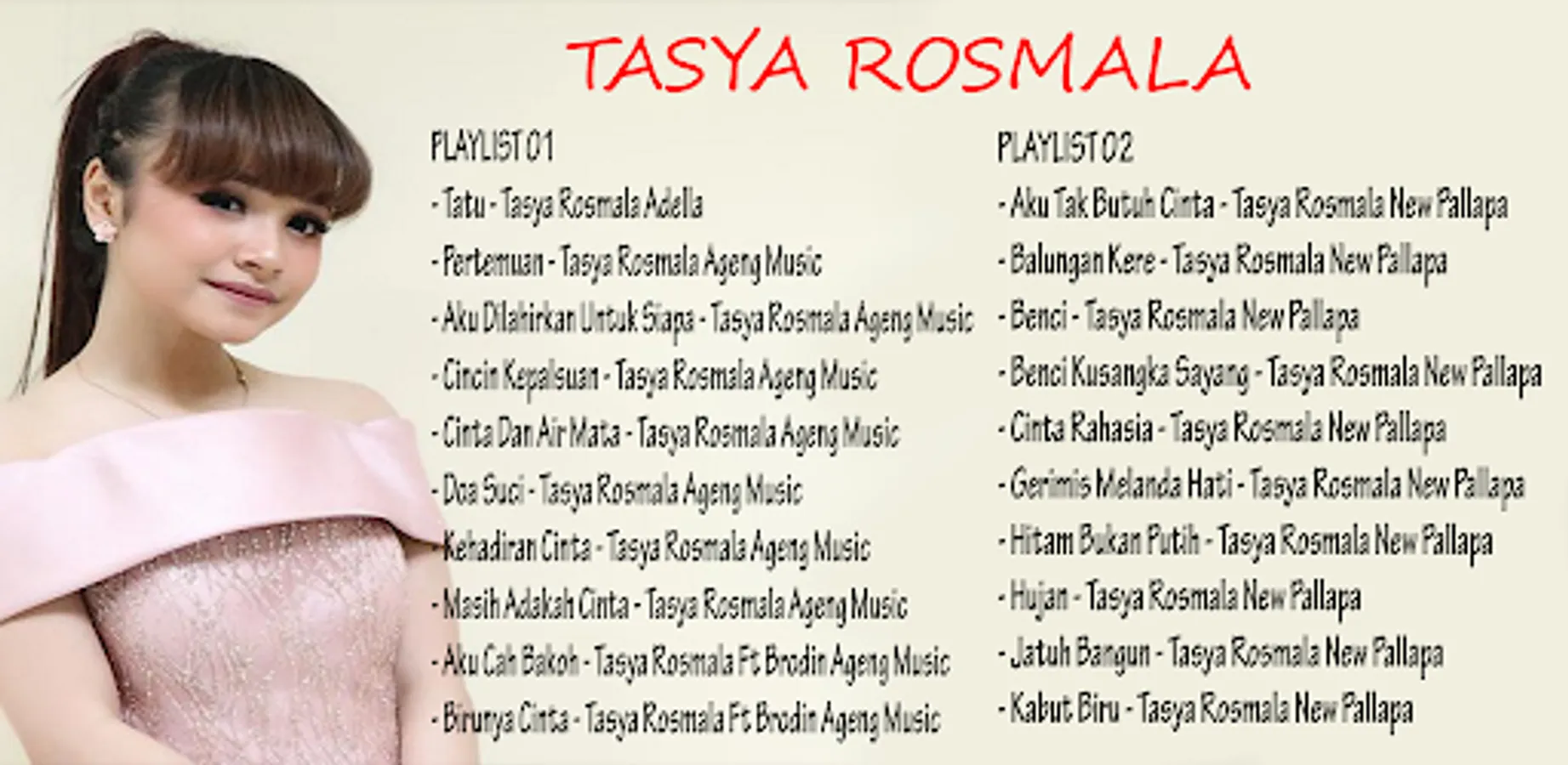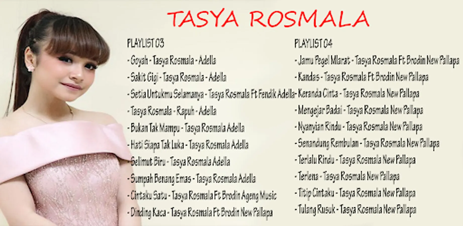 - This Tasya Rosmala mp3 song music application is a full offline music application, so you can play popular Tasya Rosmala songs offline without being connected to the internet so you don't have to be afraid of running out of internet quota.