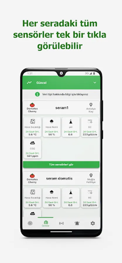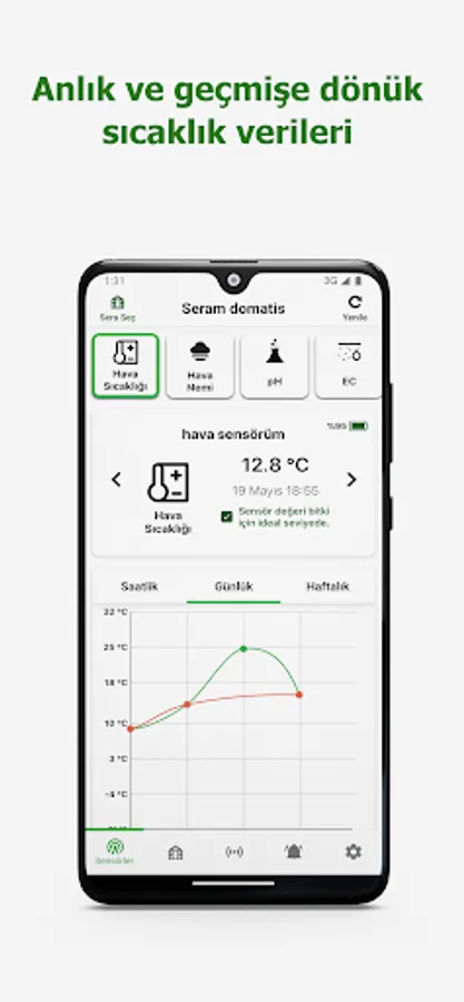 With the Temperature and Humidity Sensor Module, you can instantly monitor the temperature and humidity in your greenhouse via the SeraCell application. When the temperature and humidity values in your greenhouse fall below the determined limit values, you will be informed by phone call, sms or mobile application.