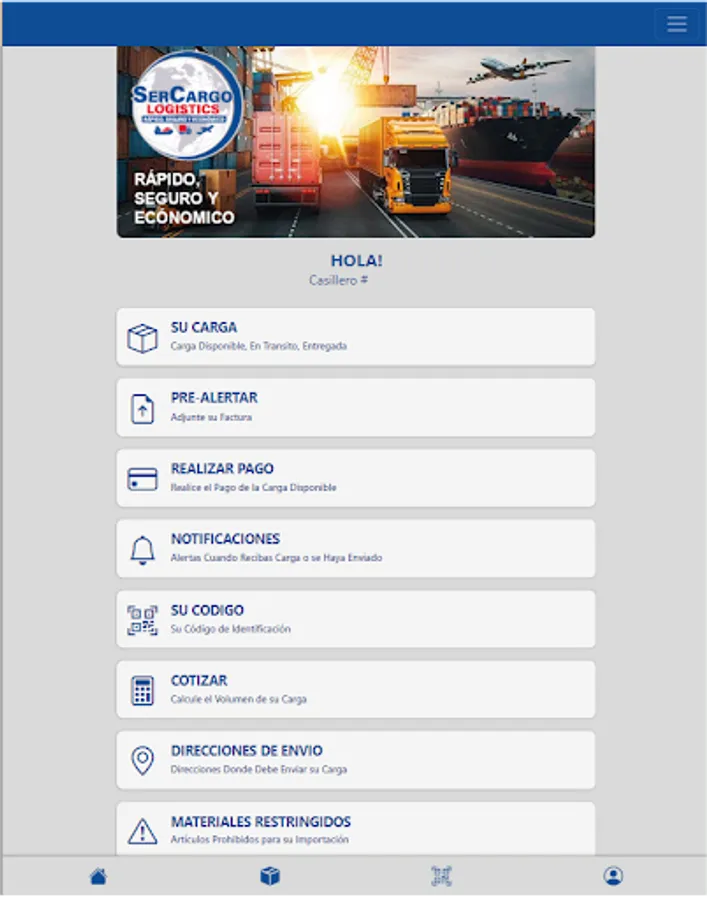 Everything in one place, our APP allows you to track, pre-alert and quote your cargo, how to correctly fill out your shipping address, whether by air or sea, make your payments, coordinate your home delivery, receive notifications and update your data.
