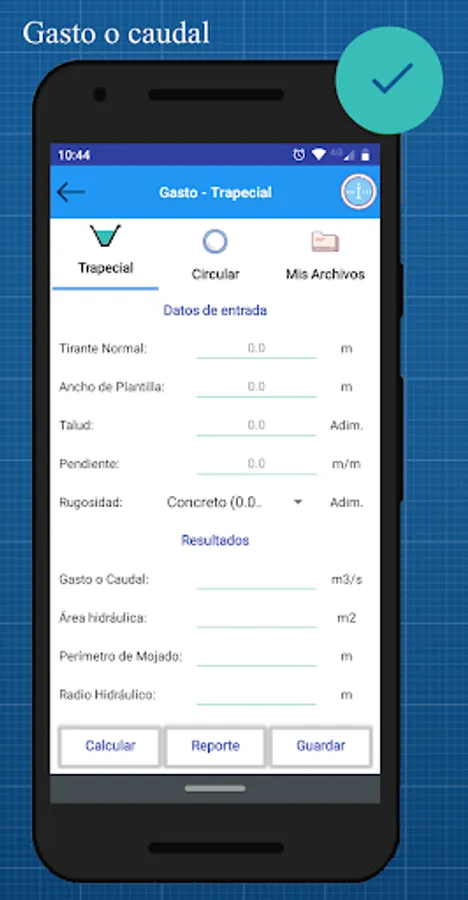 i) Expense or Flow [Trapezoidal, rectangular or triangular section]: determines the flow that passes through a channel.