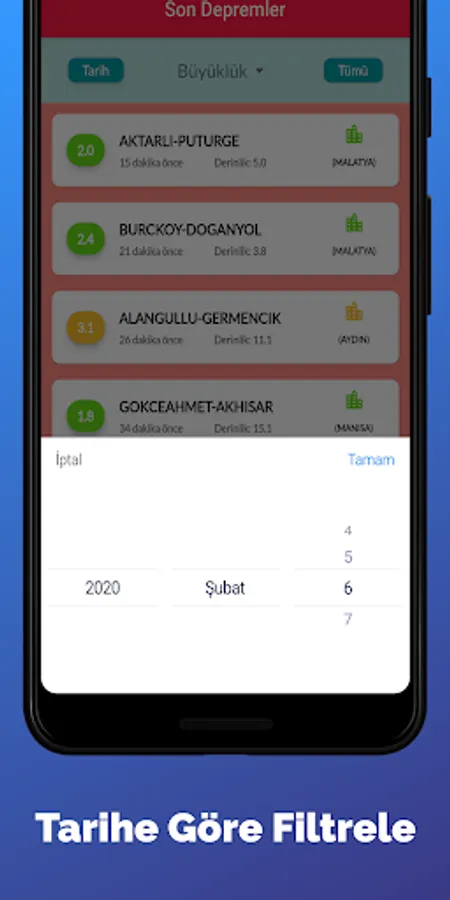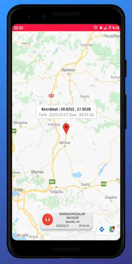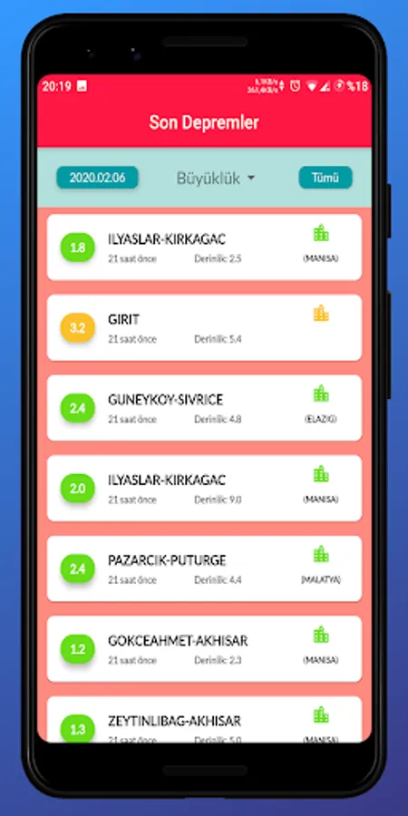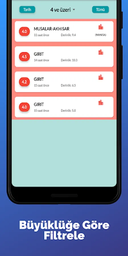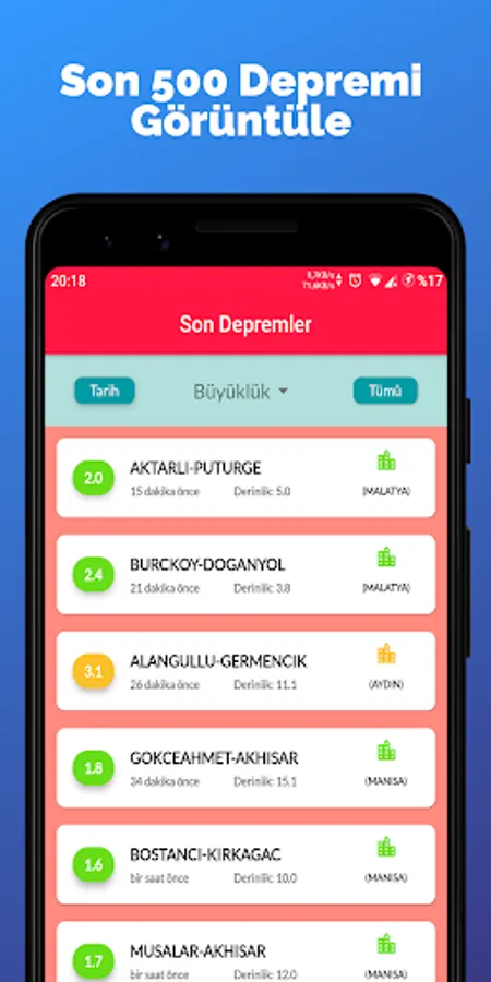 500 earthquakes in Turkey last held the position, intensity, depth and time display with information.