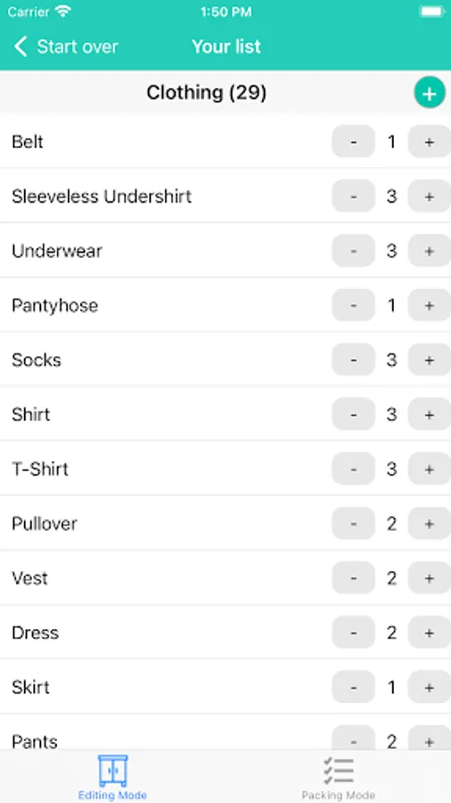Once your list is prepared, use the packing mode and start checking all the items in your list, one by one, as you go and put them in your bags. It's that simple!
