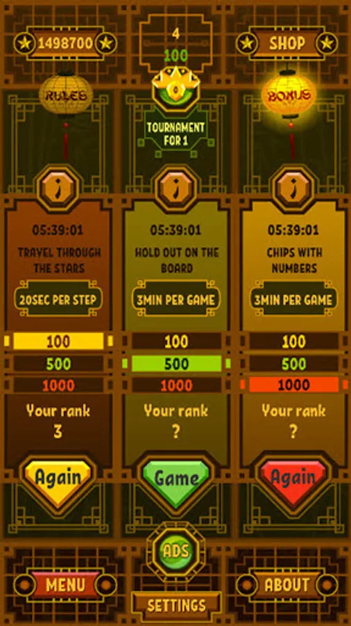 Play with friends, travel around the stars, flip chips with dots and numbers, or just hold on to the board for a given number of moves.