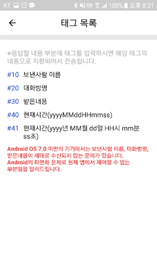 - Tag setting function (dynamic information transmission such as receiver name, chat room name, received time, etc.)