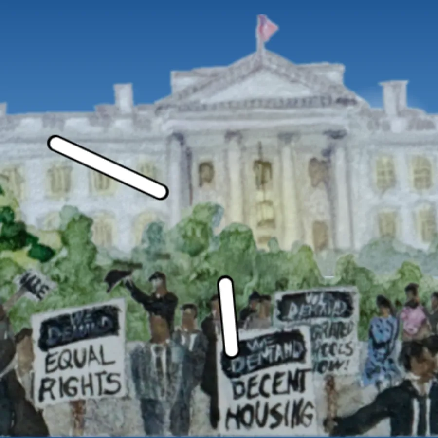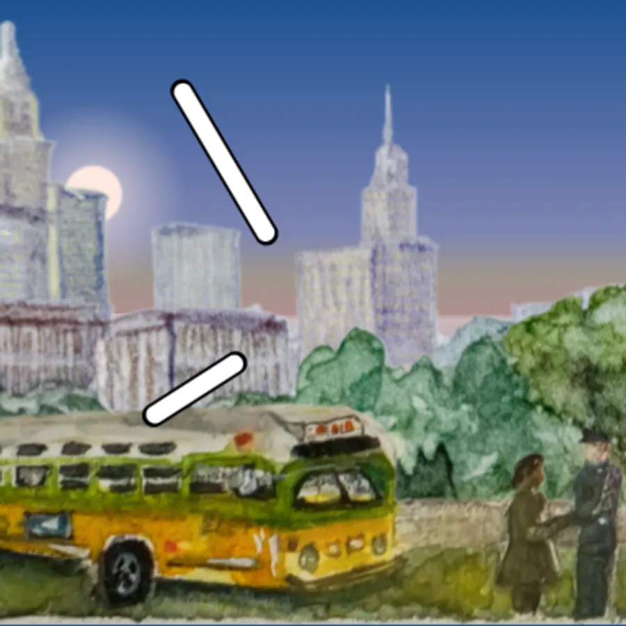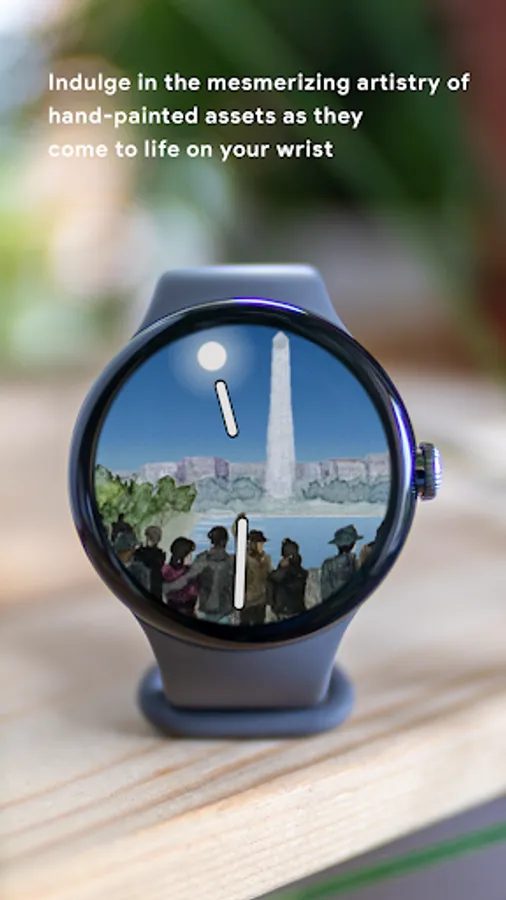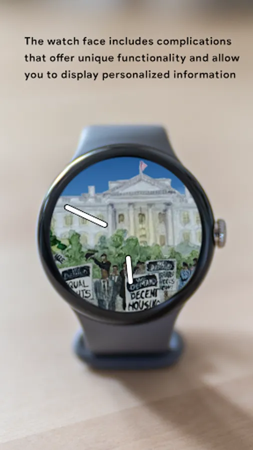 The watch face captures significant milestones of the Civil Rights Movement. It begins with the arrest of Rosa Parks, symbolizing her courageous act of resistance and the subsequent Montgomery Bus Boycott. The painting then moves forward to depict the iconic "March on Washington". Finally, it concludes with a representation of the Civil Rights Act of 1964. The watch face tries to capture the movement's key moments, encapsulating the spirit of resilience, determination, and progress.