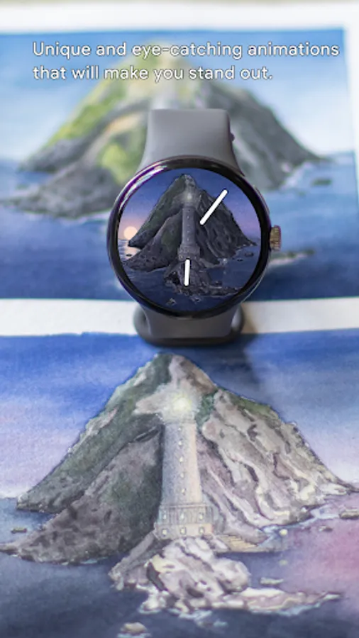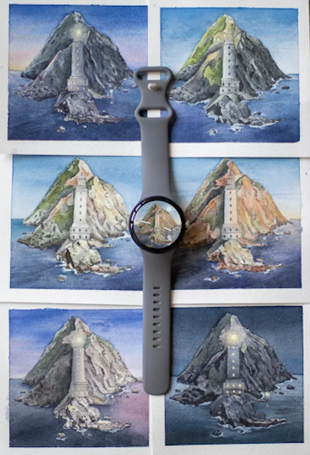Experience the captivating beauty of a lighthouse from dawn till dusk with our stunning hand-painted animated watch face. Introducing 'Lighthouse Watch Face,' an artistic masterpiece that brings the magic of changing light and shadows to your wrist.