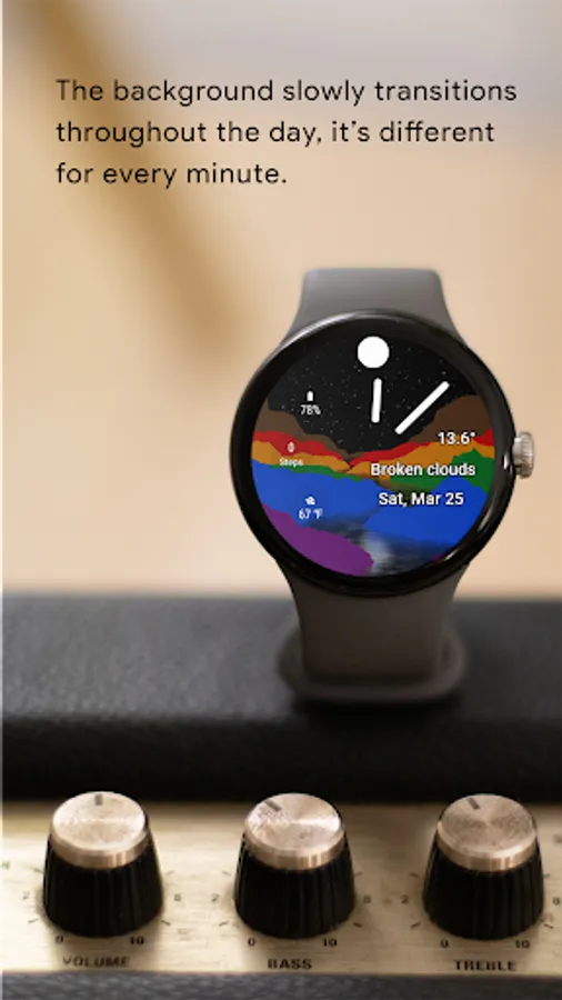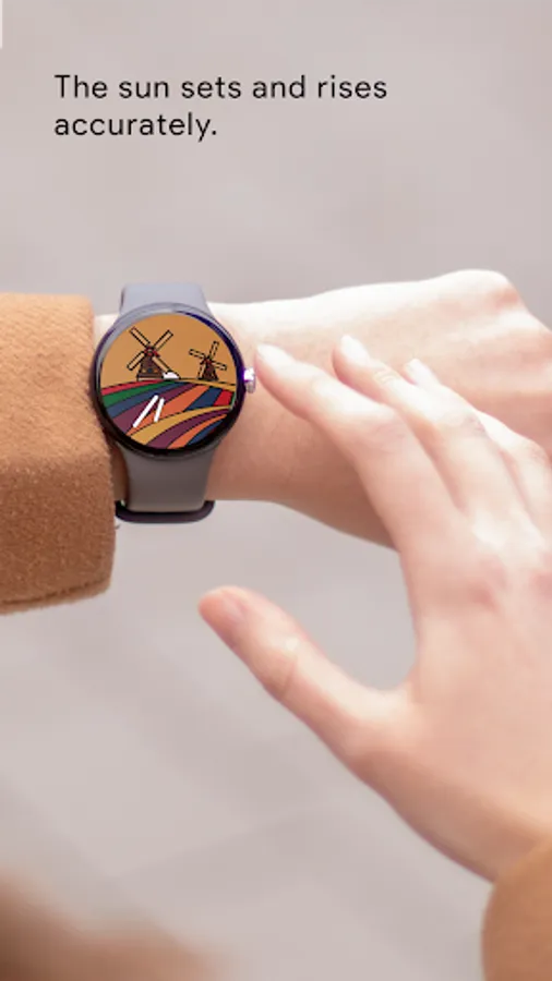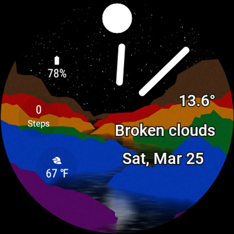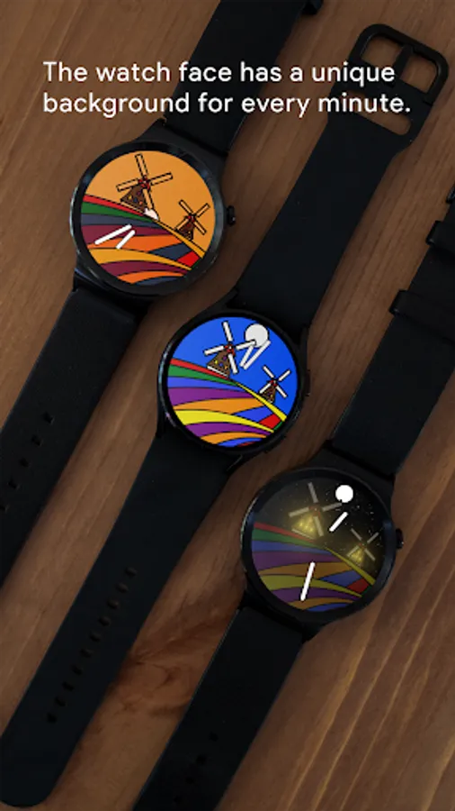 Experience miniature animated world on your smart watch with LGBT pride flag colours. In this world every second of the day has its distinct representation with multiple themes and color palettes.