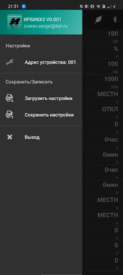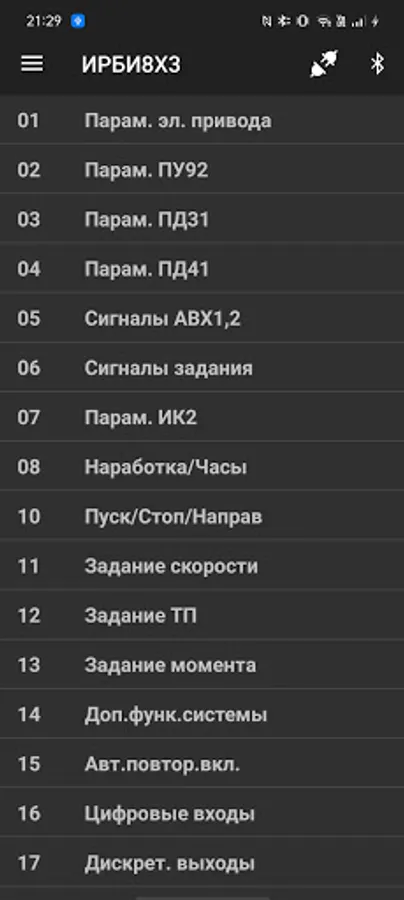 To work, you need a Bluetooth module for the converter IRBI 8-series. Manage, change the parameters of the converter and save them to an XLS file.
