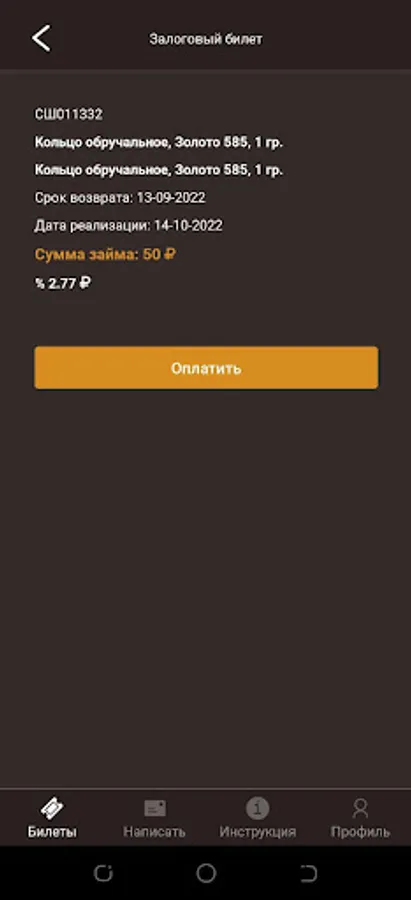 The main task of the application is to provide information support for users of the personal account of LLC ZHOLUD (Pawnshop).