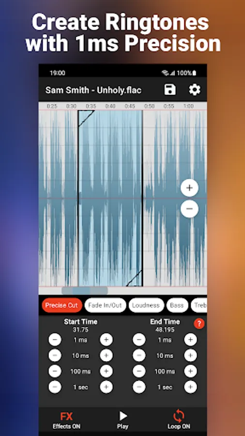 With RSFX technology, you can trim any part of your favorite songs with up to 1 ms precision. Your incoming calls will sound flawless and loop perfectly!