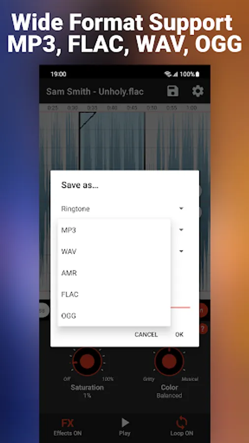 Wide format support: WAV, MP3, FLAC, OGG, AIFF, AMR