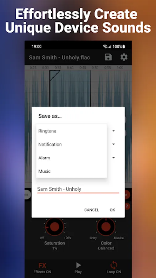 Download now and start use songs as ringtones that resonate with your personality! It's time to let your phone ring in style. Get creative with your tunes today. Try RSFX, the premier music cutter, ringtone maker, audio trimmer, ringtone creator, and cut audio mp3 app!