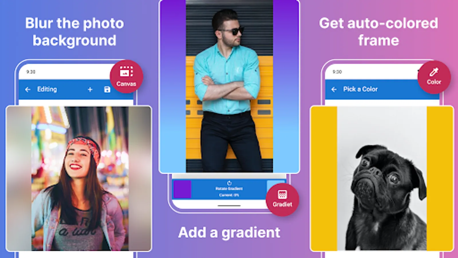 No Crop Square Pic adds an Instafit background to your photo, so you don't have to crop photos. The square fit background can be a color of your choosing, or you can stretch your square photo to any aspect ratio. Squaredroid For WhatsApp helps you be creative.