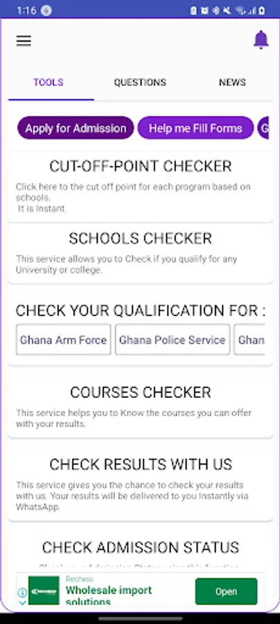 Get Easy and fast Admission Buy Admission Forms, Get Admission as D7 or E8 student, Check Placement, Check Admission Status, Print Admission Letter, Buy Placement Checker, Buy Results Cher Card, Admission news , Check Results, Check NABTEX Results, Check School Fees, Ask admission related Questions, Calculate GPA, Calculate Aggregate, Check Placement, Check Cut off point, Check verification ,Check School Qualification, Check program Qualification and many more with new and User friendly designs without stress.