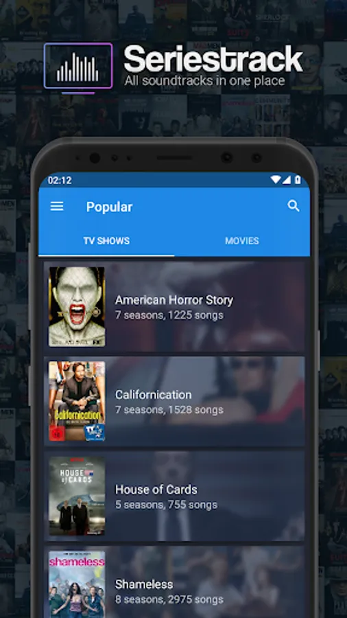 Seriestrack - the first app in Google Play where you can listen to the soundtrack that was played on TV shows and movies. Here you will find more than 500 TV shows and 600 movies, as well as more than 400,000 soundtracks.