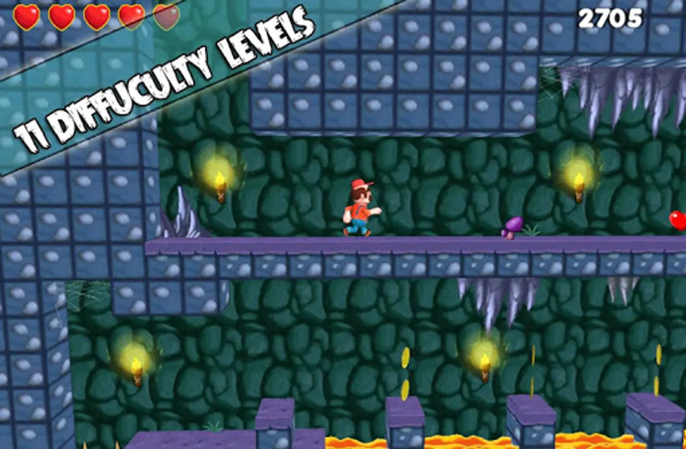 The game has 11 amazing levels, with new enemies, creature,bat,traps, challenges and incredible adventures. The incredible HD graphic designing great spaces and crafted characters will drag you into this fantastic world, where you're gonna be the real hero fighting against the alien, Zigor the wicked.