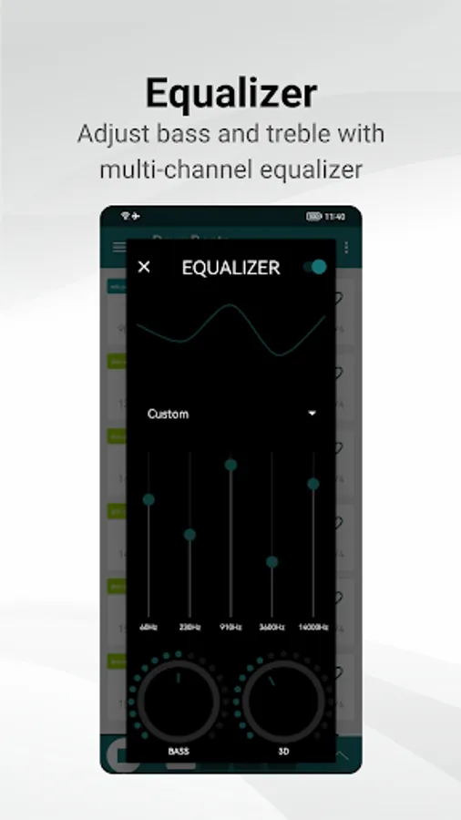 With the graphic-based equalizer, there are different tuning channels and scrolling arrows for you to make adjustments on these channels. When you pull the bar up on each channel, the signal is increased, while when you pull the bar down, the signals are decreased. With the help of the equalizer, you can make the best adjustment according to your own music taste.