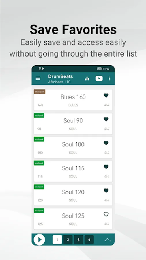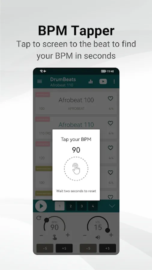 ⚡ A cleverly designed drum engine lets you change the tempo/BPM of each beat. This makes practicing even more fun and you don't need your metronome or rhythm station.