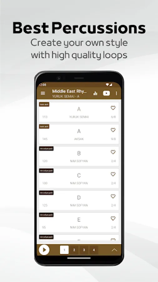 Turkish-Arabic Middle East Drum Beats is a rhythm station app with great loops. Play different genre of rhythms and jam along!
