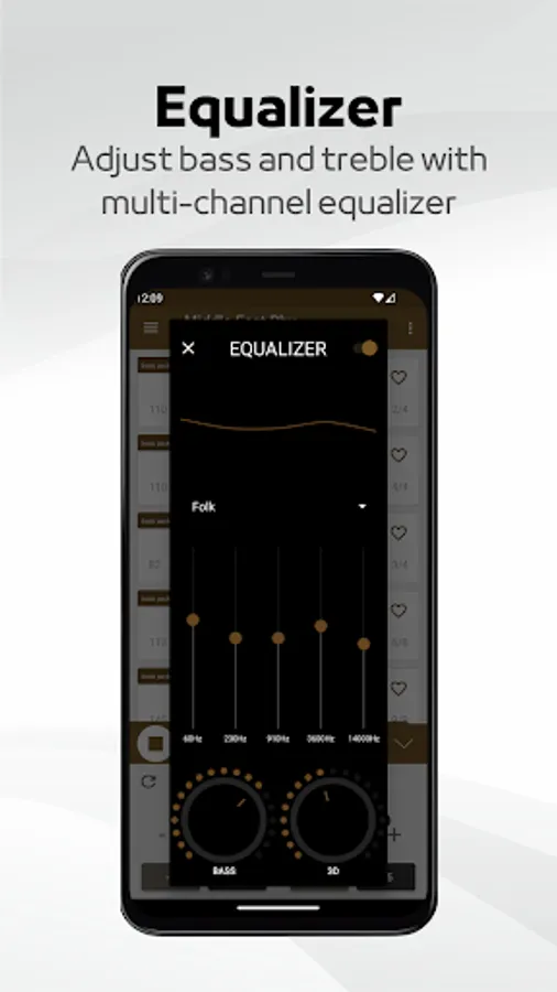 With the graphic-based equalizer, there are different tuning channels and scrolling arrows for you to make adjustments on these channels. When you pull the bar up on each channel, the signal is increased, while when you pull the bar down, the signals are decreased. With the help of the equalizer, you can make the best adjustment according to your own music taste.