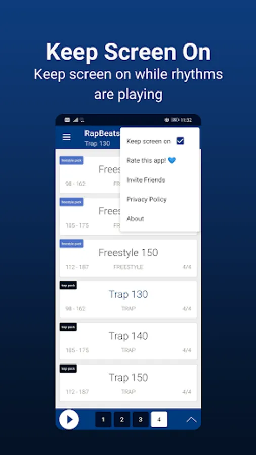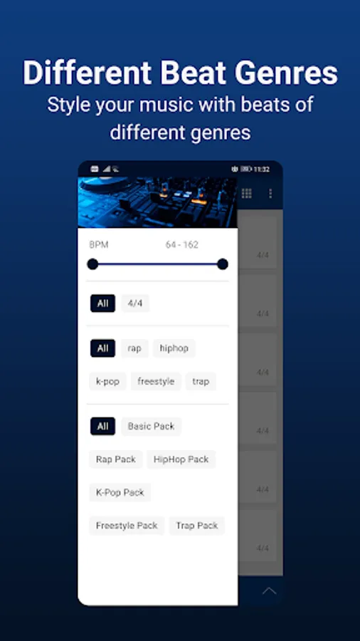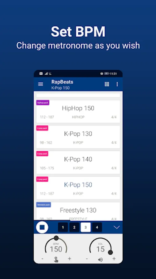 ⚡ A cleverly designed drum engine lets you change the tempo/BPM of each beat. This makes practicing even more fun and you don't need your metronome or rhythm station.