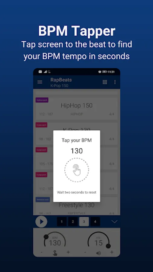 ⚡ You can set the tempo/BPM by tap the screen thanks to specially developed algorithms.