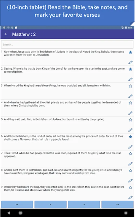 - Favorites and notes: save verses into your favorites list, take notes and read them later.