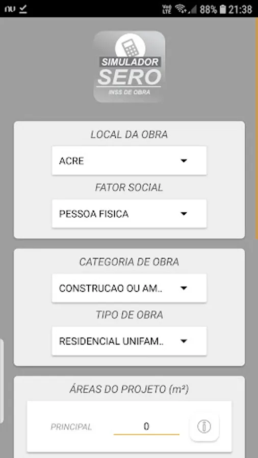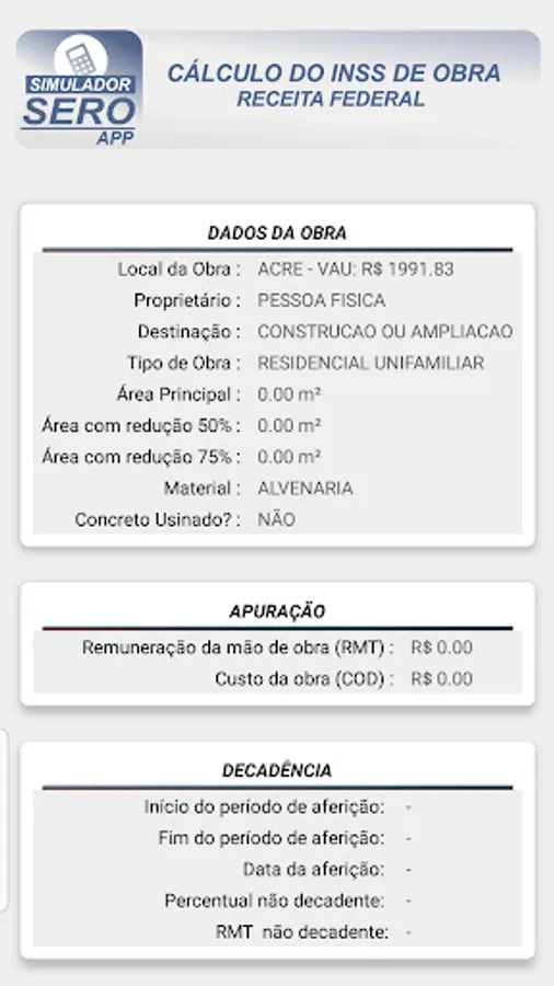 The SERO Simulador INSS of Work application allows the simulation of gauging through the following information: