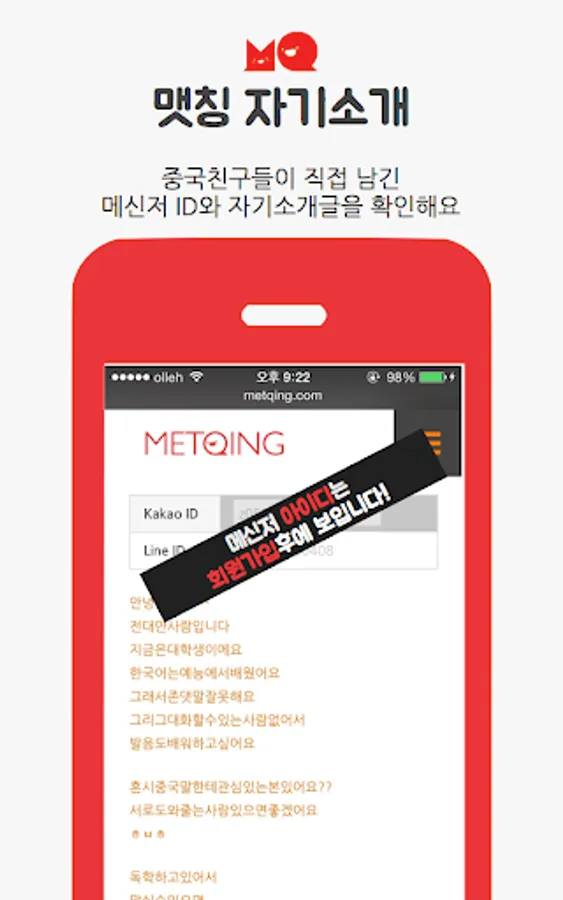 Freely find friends by exchanging Kakao talk ID and Wechat ID.
