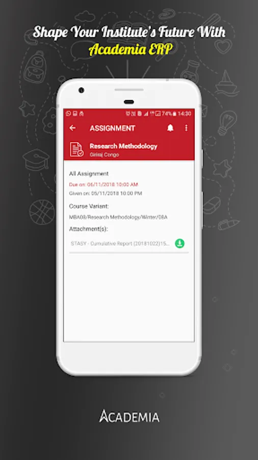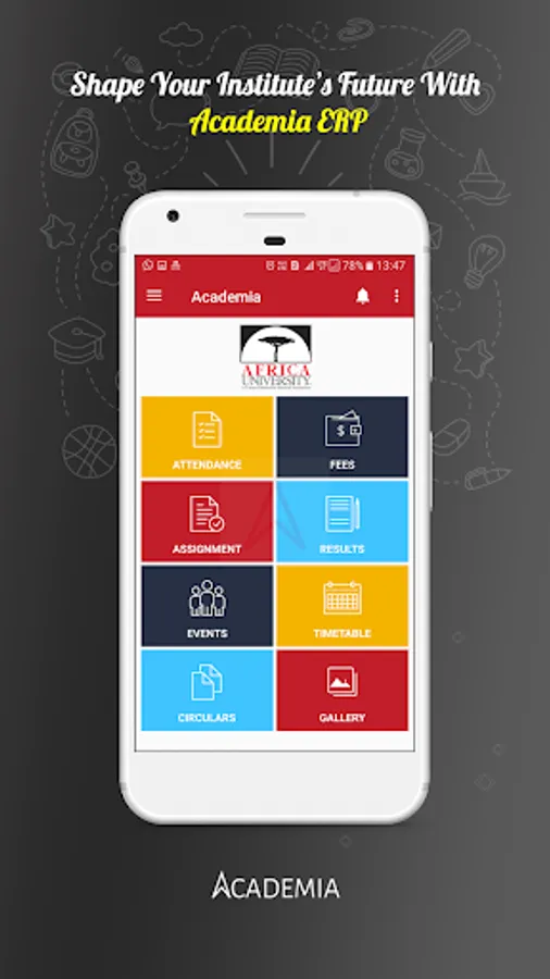 Academia @ AU is a comprehensive college management app from Academia ERP for Students of AU and their Parents. It allows them to access all their information like Assignments, Fee, Attendance Records, other co-curricular events, etc. It's especially designed for students for a better academic experience.