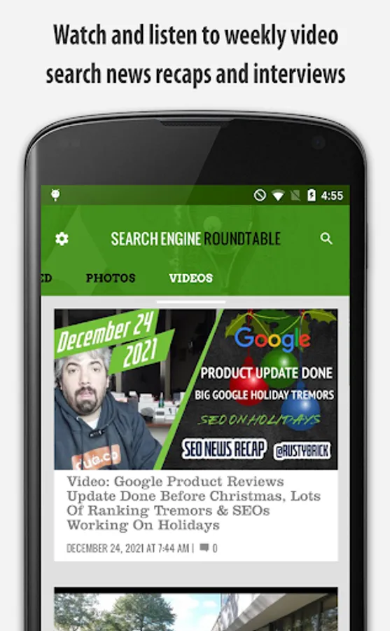 The Search Engine Roundtable app contains the latest news and tips from the search engine marketing community. With a focus on organic search and SEO (search engine optimization) tips, as well as coverage in paid search news. The vast majority of the news is around search marketing. The app contains news content, features content, daily search photos and a weekly video recap.