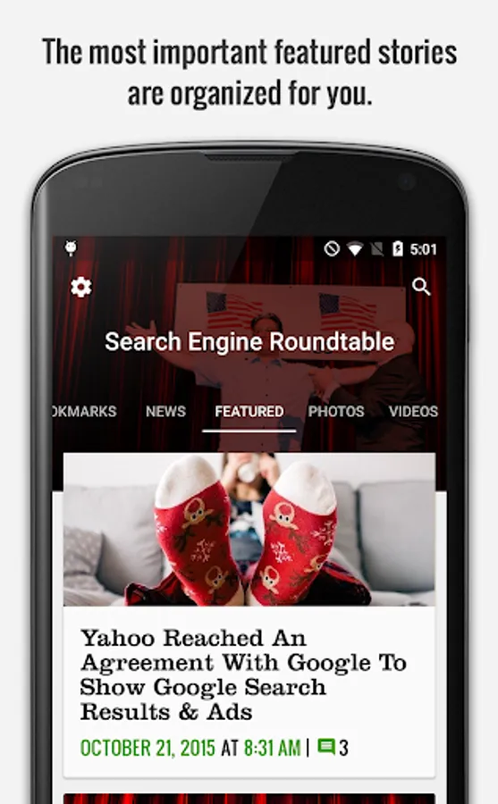 * Discover news with internal search or via App Indexing search